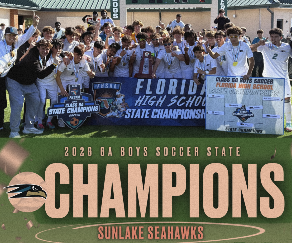 Congratulations to the Seahawk Boys Soccer as they beat Mandarin High School 3-2 to become the 2026 6A Boys Soccer State Champions.